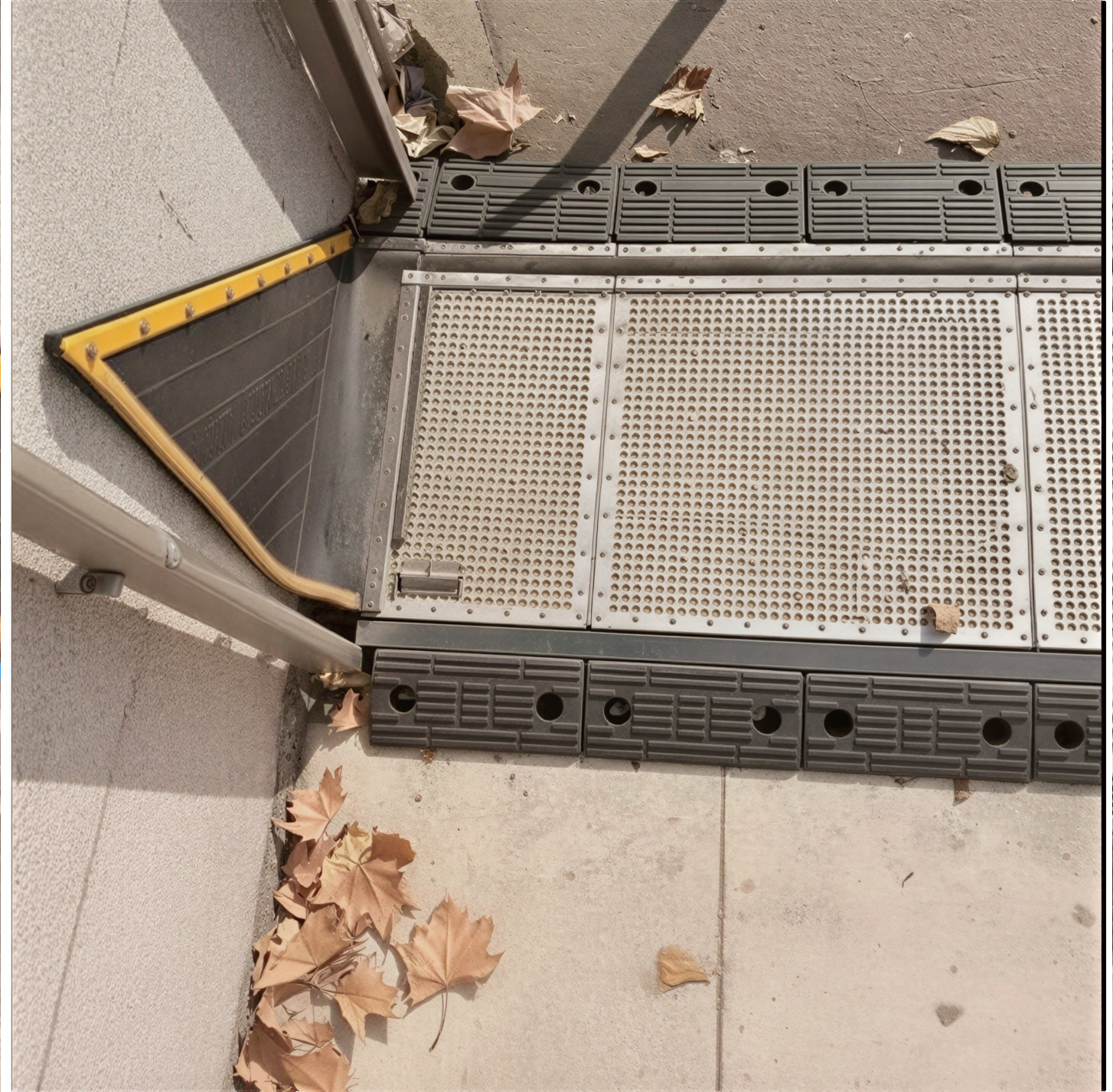 • Ground seals: rubber sealing strips bonded into grooves in the base frame with structural adhesive form a continuous seal with the ramp surface.