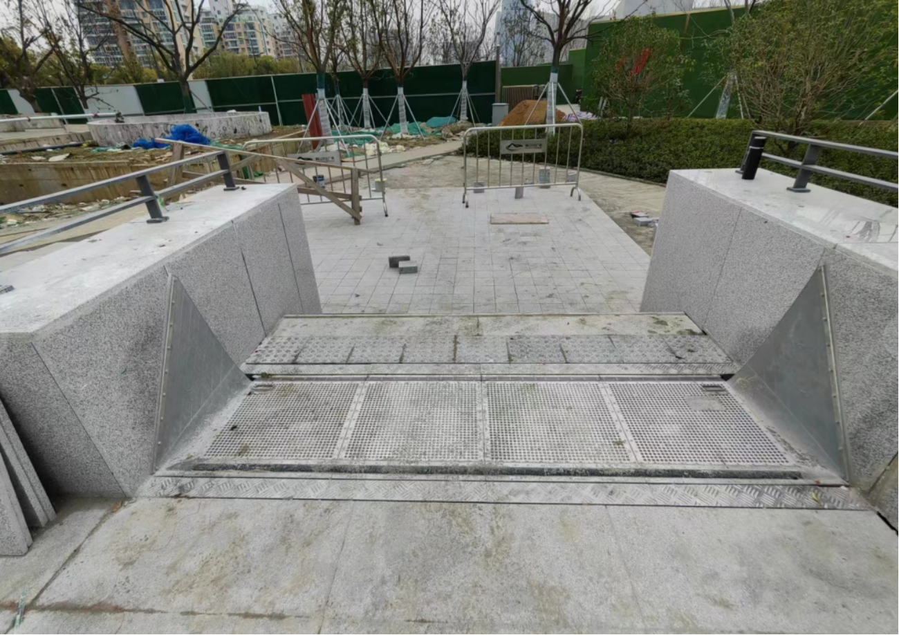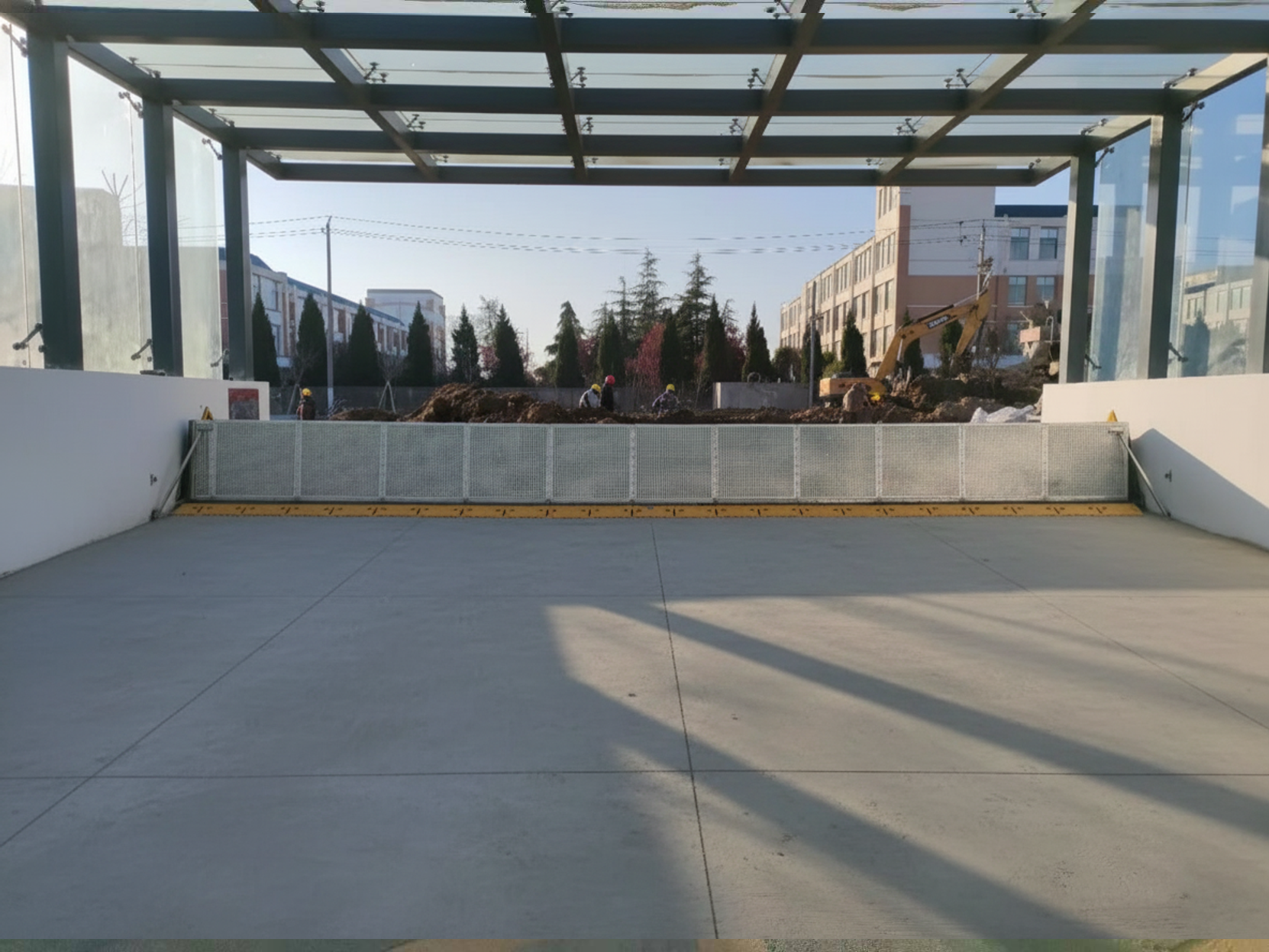 • Yes. In the closed (non-flood) position the top of the panel forms a low-profile, anti-skid driving surface that vehicles and pedestrians can cross normally. When the barrier is deployed, the ramp geometry and panel design still allow emergency vehicle egress out of the protected area as the flood panels are rising.