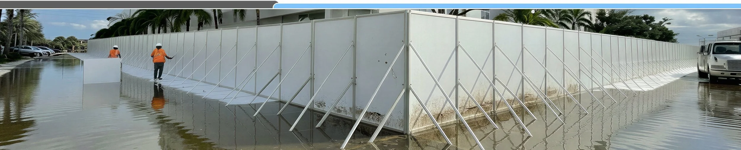 BlueFIN™ flood wall panels are designed to be transported flat, installed quickly, and store compactly; ready to use as needed.