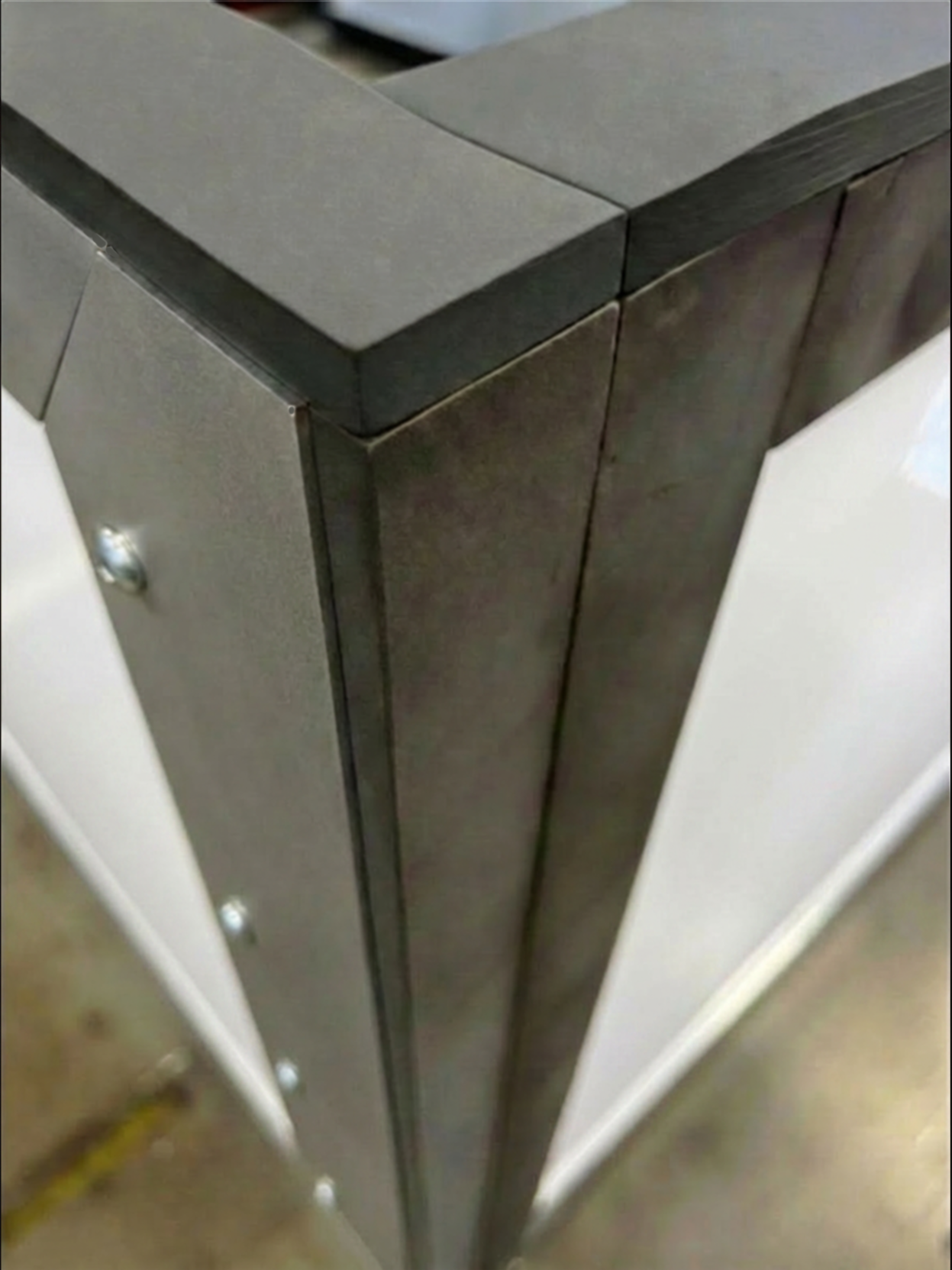 The bottom of the upright panel has a specialized overhanging extrusion, with a rubber gasket, that is designed to overlap the frame of the bottom panel.